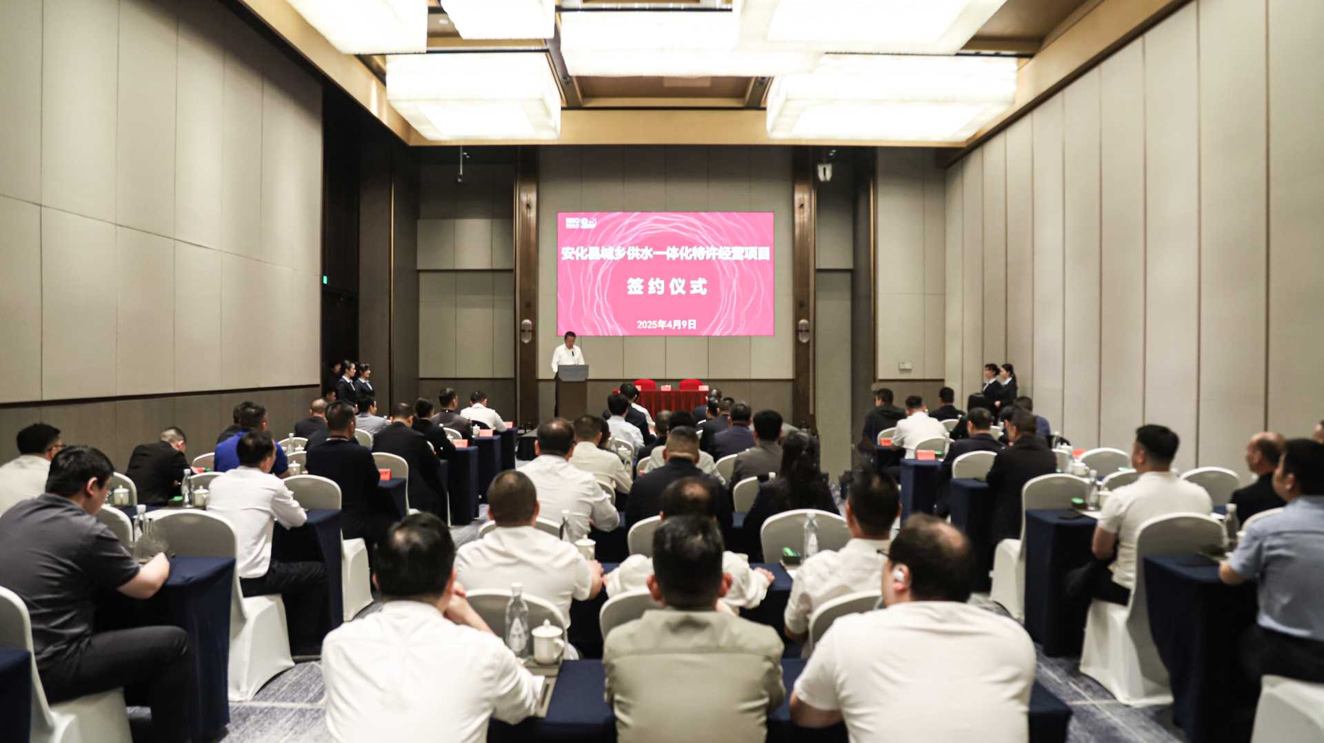 何剛信表示,中國水務(wù)將繼續(xù)堅持“客戶、管理、服務(wù)、品牌、資本”全要素發(fā)力,以服務(wù)支撐客戶滿意,以管理保障運營安全,以品牌贏得社會青睞,以資本實現(xiàn)有序發(fā)展,以創(chuàng)新驅(qū)動產(chǎn)業(yè)升級,把安化水務(wù)有限公司打造成為讓百姓滿意、政府信賴、客戶認(rèn)可的地方一流水務(wù)企業(yè),為安化的鄉(xiāng)村振興注入源源不斷的 “水動力”,為全國城鄉(xiāng)供水事業(yè)的高質(zhì)量發(fā)展貢獻(xiàn)“安化經(jīng)驗”。謝石對安化縣城鄉(xiāng)供水一體化特許經(jīng)營項目順利簽約表示熱烈祝賀,希望合作雙方能夠緊密攜手、務(wù)實推進(jìn),將城鄉(xiāng)供水一體化項目這一民生實事辦好辦實,為全省山區(qū)農(nóng)村供水建設(shè)管理提供可借鑒、可復(fù)制的成功經(jīng)驗。石錄明表示,城鄉(xiāng)供水一體化是關(guān)乎民生福祉、推動城鄉(xiāng)融合發(fā)展的重大工程,是踐行以人民為中心發(fā)展思想的生動實踐,希望地企雙方以此次簽約為起點,精誠協(xié)作、攜手共贏,以高標(biāo)準(zhǔn)建設(shè)、高質(zhì)量運用、高水平服務(wù)打造標(biāo)桿工程,真正讓103萬安化人民都喝上放心水、優(yōu)質(zhì)水,凝心聚力寫好水資源這篇大文章。安化縣委、縣政府相關(guān)領(lǐng)導(dǎo),公司農(nóng)村供水工作專班、華中區(qū)域總部相關(guān)負(fù)責(zé)人出席活動。