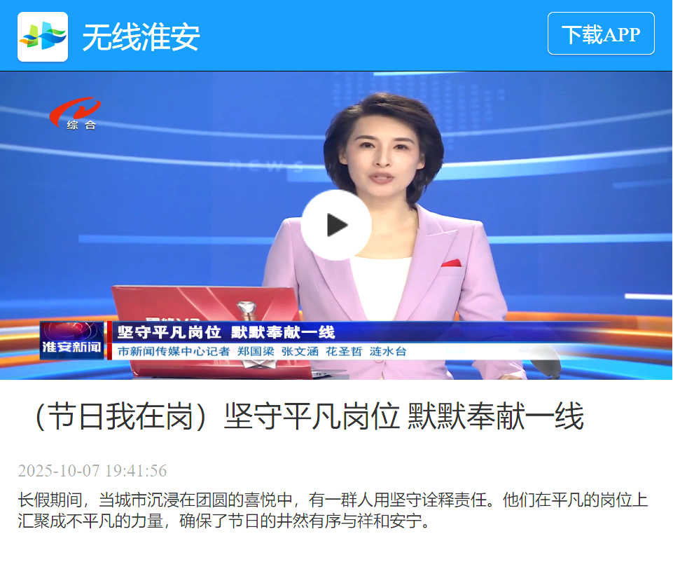 中秋、國慶雙節(jié)期間,淮安電視臺“無線淮安”欄目組走進華東區(qū)域總部淮安水司,深入采訪報道淮安水司在節(jié)日期間保障安全優(yōu)質(zhì)供水的各項舉措與一線員工堅守崗位的動人事跡。10月7日晚,相關(guān)報道在“無線淮安”平臺正式播出,生動展現(xiàn)了淮安水司堅守“供水為民”的初心使命與企業(yè)擔(dān)當(dāng),取得了良好的社會反響。